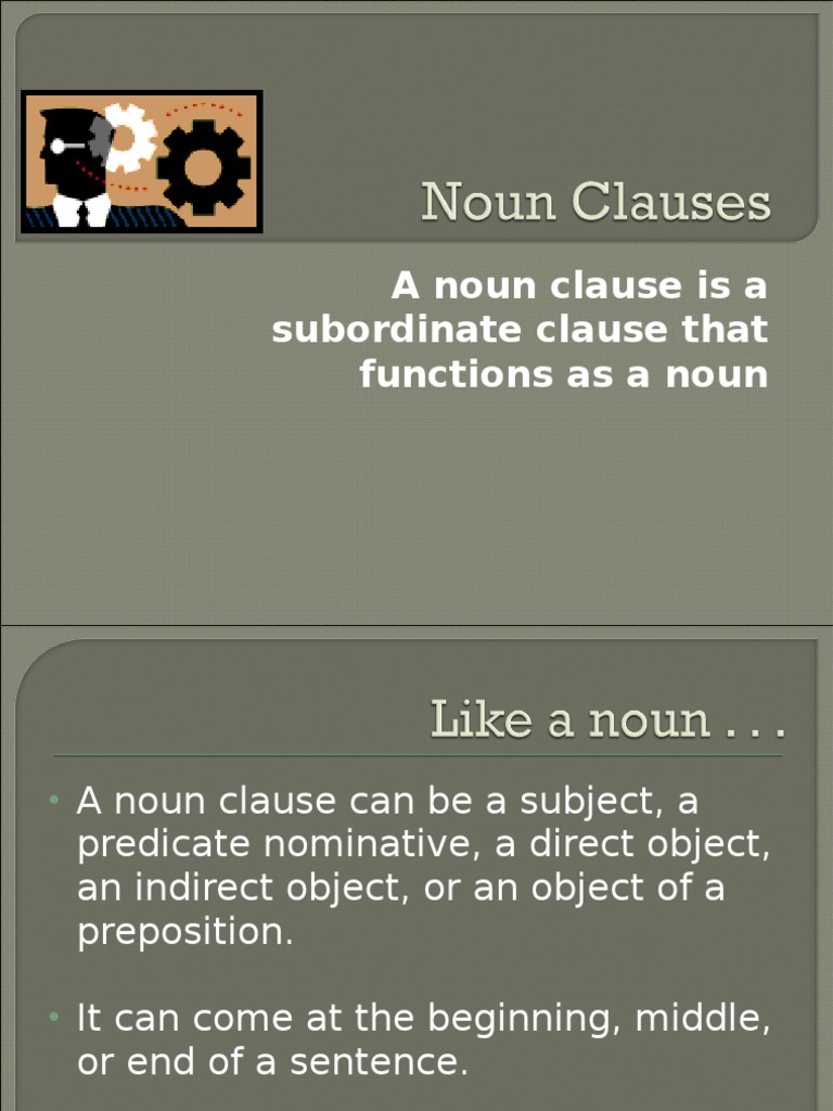 The teacher will give whoever is talking a detention. Sep 22, 2020 · a noun clause is a dependent clause that acts as a noun. Many people have speculated about why donald sings. A noun clause can also serve as a subject complement. A subject complement modifies, describes or completes the subject of a clause.